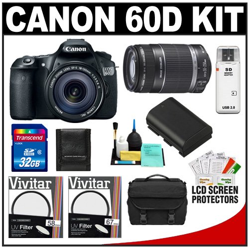 Canon EOS 60D Digital SLR Camera Body with 18 135mm IS Lens 55 250mm IS Lens + 32GB Card + Case + Accessory Kit