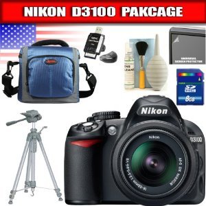 Package Includes:Nikon D3100 Kit w/18-55mm VR Universal Screen Protectors 4 in 1 Cleaning Kit Xporer Vista 90 DSLR Case Xplorer 3540 Tripod 8GB Memory Card USB 2.0 SDHC Memory Card Reader